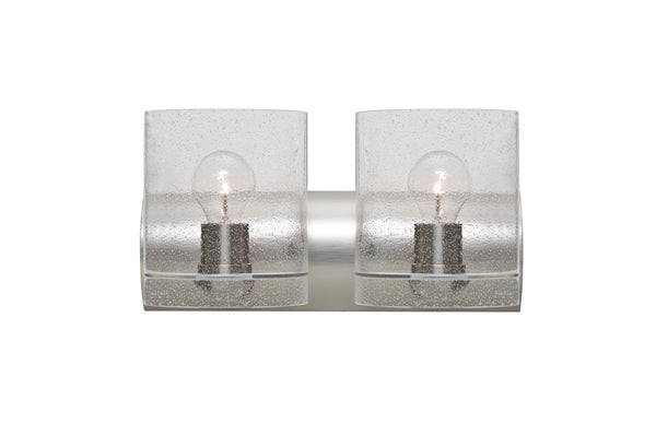 The Celtic Vanity is a contemporary bath design, employing a softly radiused and fused 3-piece glass diffuser. The glass includes a blown bubble glass upper section and a blown bubble glass lower section, which are fused onto a clear flat glass body with an exposed rounded edge. The clear glass body connects the glass to the upscale plated back plate, resulting in a floating glass appearance. And the pleasing play of light through the lower bubble accents make for a striking affect. The Vanity fixture is equipped with a sleek arcing die cast lamp holder and matching radiused rectangular canopy. These stylish and functional luminaries are offered in a beautiful Satin Nickel finish.