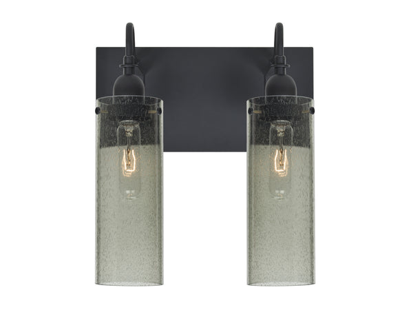 The Juni 10 Blue Vanity is a transitional bath design composed of a transparent blue glass cylinder, with an interesting bubble pattern blown randomly throughout the glass. Mounted off the broad canopy with timeless gooseneck socketholders, the pleasing play of light through each shade`s bubble accents make for a striking affect along with the prominent display of the lamp filament behind the glass. These stylish and functional luminaries are offered in a beautiful Black finish.
