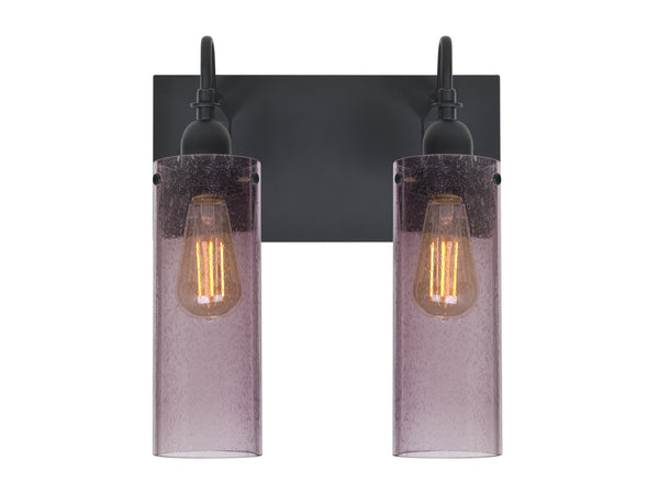 The Juni 10 Blue Vanity is a transitional bath design composed of a transparent blue glass cylinder, with an interesting bubble pattern blown randomly throughout the glass. Mounted off the broad canopy with timeless gooseneck socketholders, the pleasing play of light through each shade`s bubble accents make for a striking affect along with the prominent display of the lamp filament behind the glass. These stylish and functional luminaries are offered in a beautiful Black finish.
