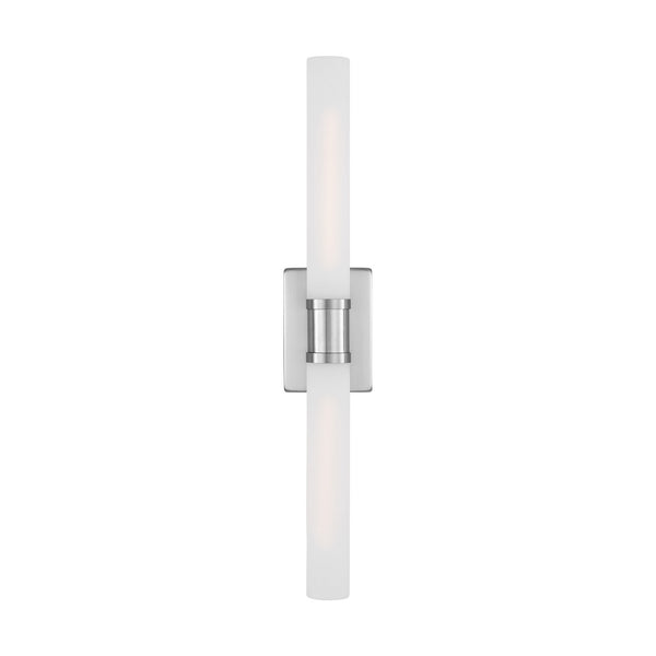 Sleek and modern, this 2-Light bath series pairs a square backplate with tubular etched white opal glass shade. The Keaton two light vanity fixture in Chrome provides abundant light for your bath vanity, while adding a layer of today's style to your interior design.