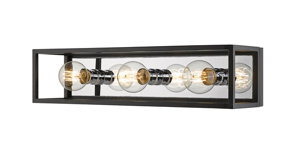 Give your home lighting a bold, edgy upgrade with this two-tone three-light vanity. It features a classic matte black and brushed nickel finish with an austere rectangular design. You'll love how it energizes a bathroom or powder room with its panache and glam.