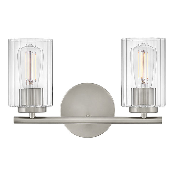 Beaming with low-key luxury, Leta's clear ribbed glass glimmers with major style. Warm dimmable lamping accented by versatile Black, Brushed Nickel, or Lacquered Brass finishes fills any powder room with a refreshing glow.