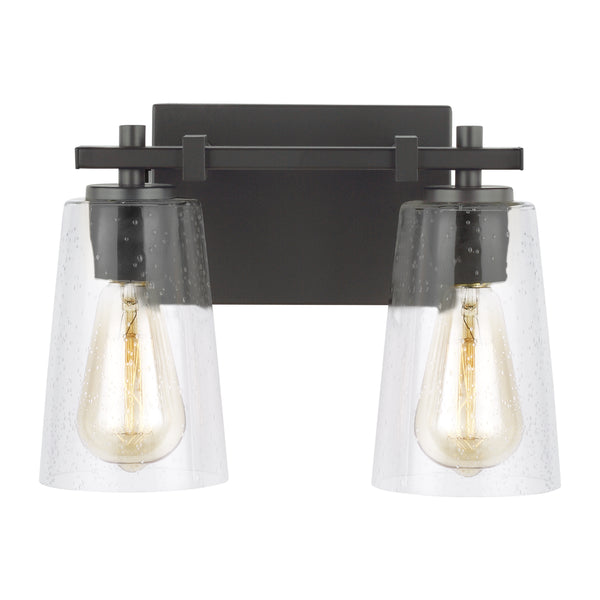 Modern details, like the clean square supports of the cross arm and sleek, rectangular backplate, are defining features of the Mercer. Available in five modern finishes and thickened seeded glass shades, this Mercer vanity lights create a delicately gorgeous effect by illuminating your space with a subtle glow.