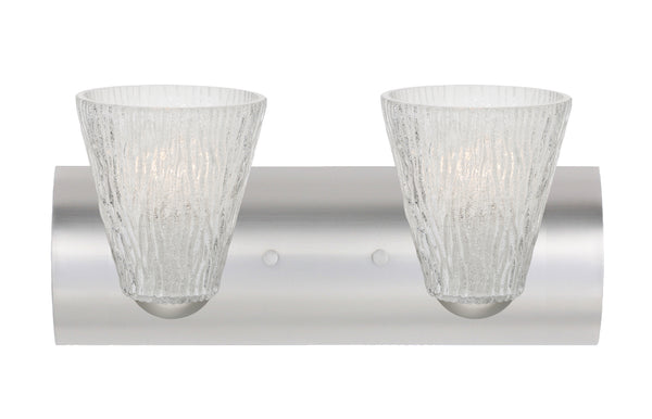The Nico 5 Clear Stone Vanity is a contemporary bath design, employing a softly radiused housing and sparkling textured shades. Our Clear Stone glass is a clear blown glass with an outer texture of coarse sandstone. Inspired by the elements of nature, the appearance of the surface resembles the beautiful cut patterning melting ice over a rock formation The vanity fixture is equipped with sleek arcing diecast lampholders and matching radiused rectangular canopy. These stylish and functional luminaries are offered in a beautiful Satin Nickel finish.