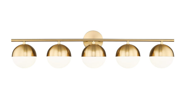 Create a custom look with the moveable metal shields featured on this mid-century two-light vanity bath light. Allowing for precision lighting and a specific ambiance, this fixture features a brushed nickel finish and orb shades, crafted in matte opal glass for soft, glare-free illumination. A straight, round tube arm and round wall plate complete the look with refined character.