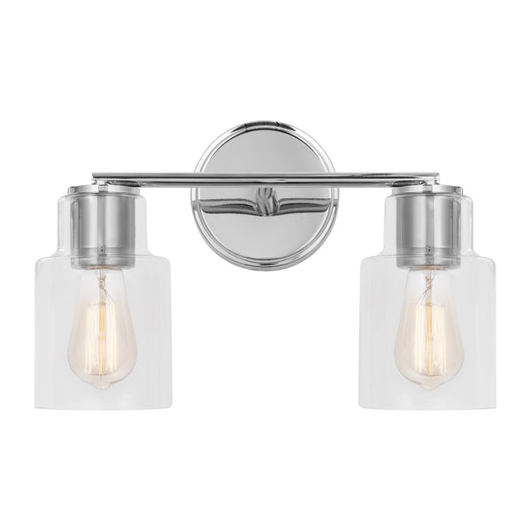 Add a bright burst of light where you need it most with the classic Drew & Jonathan Sayward Two Light Wall / Bath Sconce, featuring a round metal backplate and clear glass shades. Made to coordinate across a broader range of bath hardware and design styles, the Sayward is available in four popular finishes, Brushed Steel, Chrome, Midnight Black, and Satin Brass. This light looks great on its own or installed above a bathroom vanity, and the glass shades make it ideal for filament bulbs. This fixture may be mounted in the up or down position, and is cETL listed for damp locations, making it the perfect lighting solution for any space.