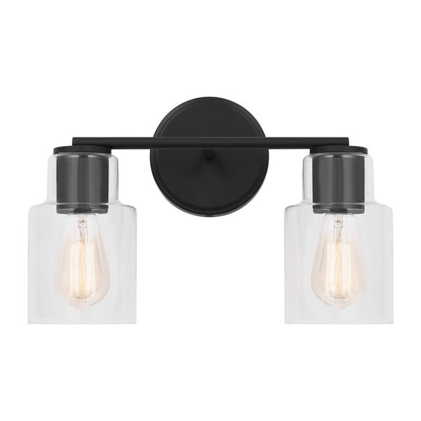Add a bright burst of light where you need it most with the classic Drew & Jonathan Sayward Two Light Wall / Bath Sconce, featuring a round metal backplate and clear glass shades. Made to coordinate across a broader range of bath hardware and design styles, the Sayward is available in four popular finishes, Brushed Steel, Chrome, Midnight Black, and Satin Brass. This light looks great on its own or installed above a bathroom vanity, and the glass shades make it ideal for filament bulbs. This fixture may be mounted in the up or down position, and is cETL listed for damp locations, making it the perfect lighting solution for any space.