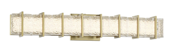 LED Vanity in Soft Brass Finish with Cast Clear Textured Crystal Glass