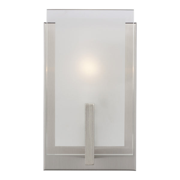 The Syll one light wall sconce in chrome offers shadow-free lighting in your powder room, spa, or master bath room. Syll features a stylish frame with brilliant frosted beveled glass panels.