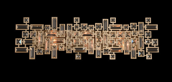 The Vermeer Collection was inspired by the De Stijl Art Movement founded in the Netherlands during the early 20th century. These Clear Prism crystals are arranged in unique patterns that embody the De Stijl principles of rectilinear lines and asymmetry then accented with Allegri's Chrome or Black Pearl finishes.
