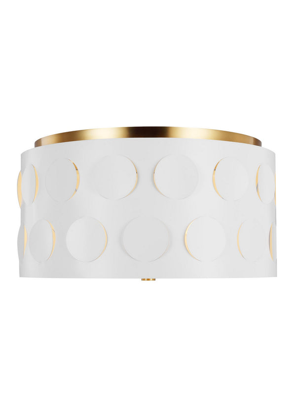 Dots are iconic to the kate spade brand—a simple and playful graphic motif. Dottie takes an iconic kate spade dot motif and cuts it into metal—creating a playful ambient light effect. A classic metal drum shade with an extra twist of perforated pattern. A matte white steel shade with an etched glass diffuser creates a gentle muted glow. Ideal for any hallway, foyer, bedroom, bathroom, or wherever overhead illumination is needed in transitional settings.