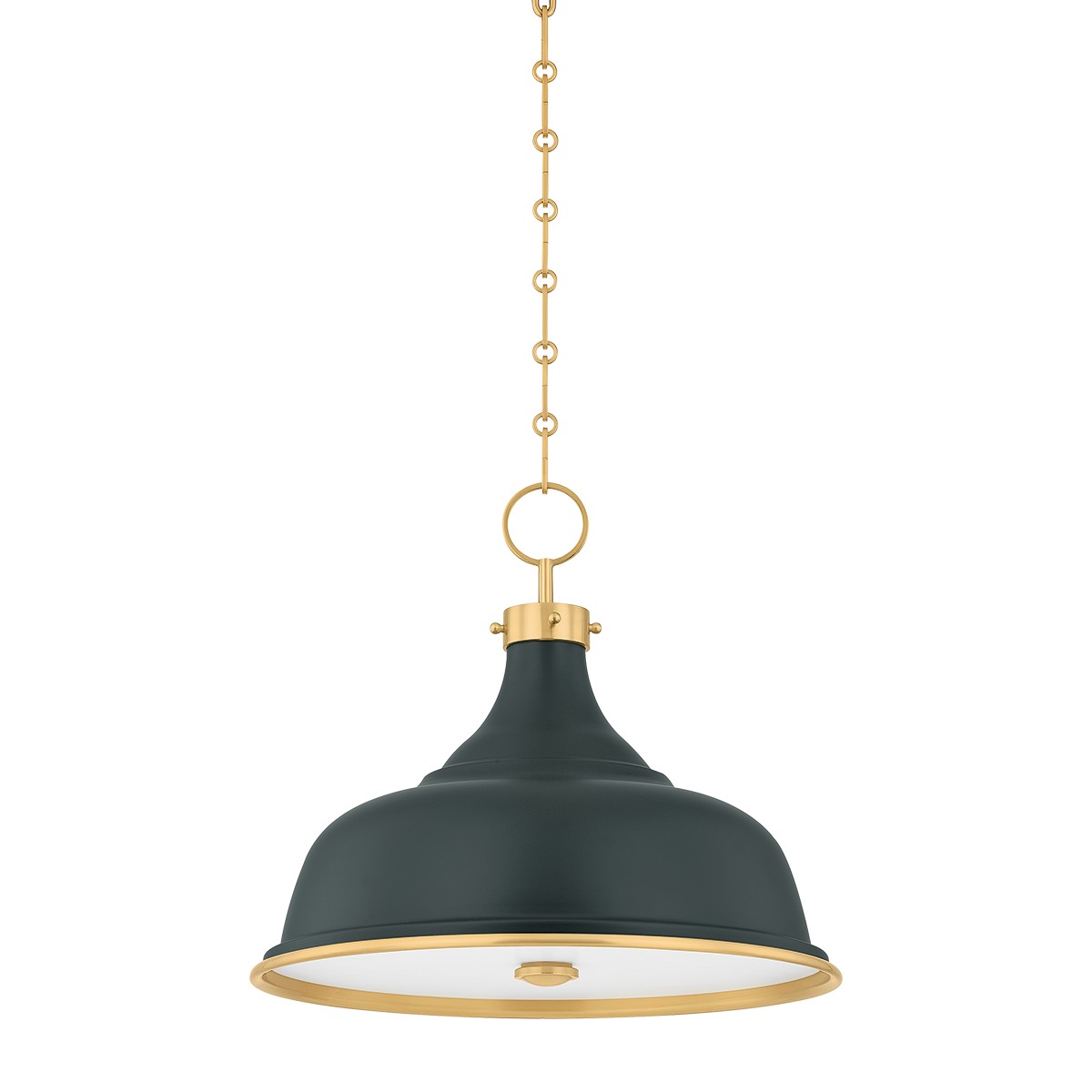 - Aged Brass/Soft Studio Green with White Glass Glass and White Shade