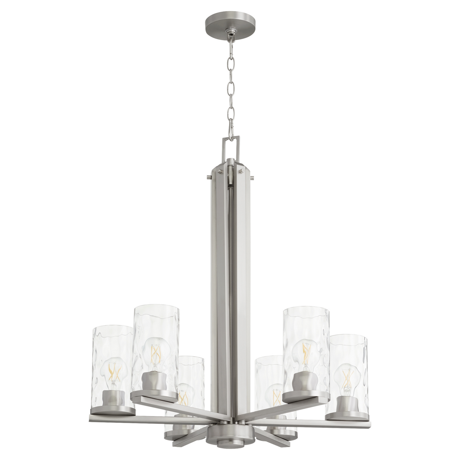 - Satin Nickel with Clear Hammered Glass and Clear Shade