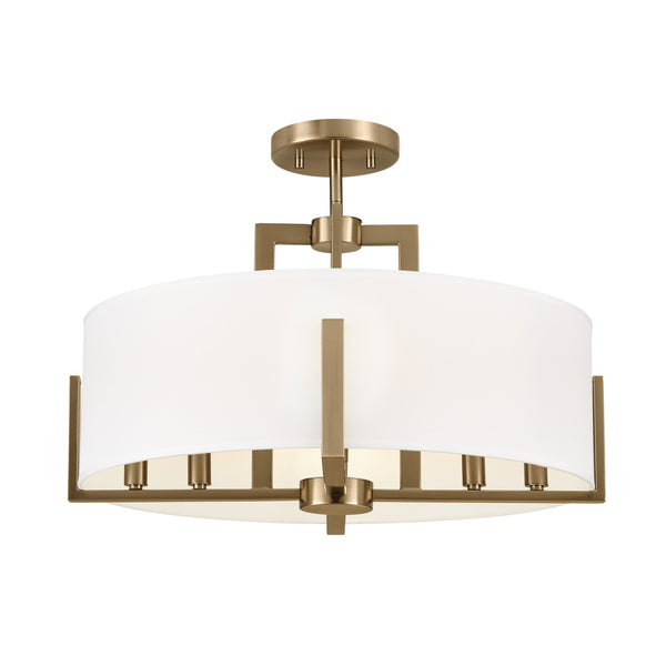 Inspired by the notion of holding and resting, the Malen semi-flush is sheer elegance. Its fabric shade nestles into refined black metal uprights. Its open view from below keeps the bulbs subtly visible as they illuminate your space.