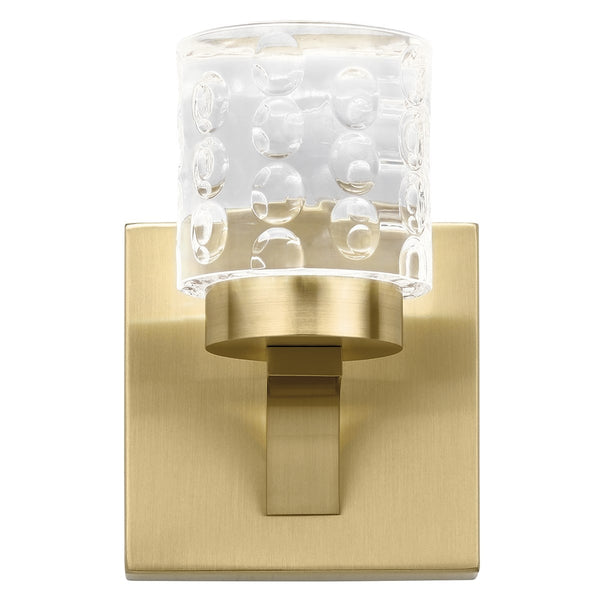 With a stunning shape and texture, the Rene wall sconce in beautiful Champagne Gold offers a welcome alternative to bath lighting. Sculpted arms hold up the light - inspired by tumblers filled with sparkling water.",