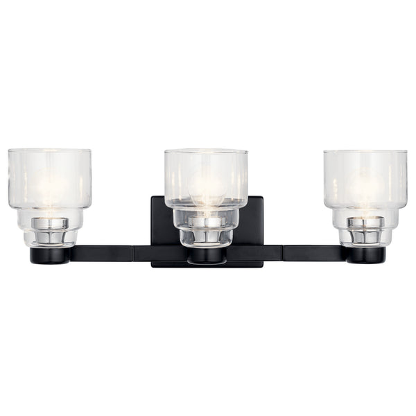 The Vionnet 14.5" 2 light vanity light features a contemporary design in Black and clear glass. A perfect addition in several aesthetic environments including contemporary and transitional.