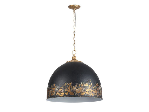 Bring farmhouse elegance into your home with the Golden Lighting Alison 5-light Pendant. Featuring a metal shade and a Vintage Gold frame, it creates a welcoming atmosphere. This metal shade enhances the light by showcasing an Antique Ivory finish with a creamy, off-white base and a textured, cracked surface, revealing elegant hints of gold underneath. This finish brings a timeless charm that beautifully complements various decor styles. The Vintage Gold finish is achieved through a meticulous hand-applied process, providing each piece with a unique and distressed appearance, ideal for those appreciating handcrafted quality. Perfect for use in kitchens, dining rooms, or bedrooms—this fixture is Dry Location Rated for indoor spaces not subject to moisture. Its sloped-ceiling compatibility and adjustable height allow for easy installation and customization to fit your space. Overall Dimensions: 21"W x 19.25"H x 21"D. Requires 5 E26 Medium base bulbs (not included), with a maximum wattage of 60 per bulb. Transform your living space with this stunning lighting piece that ensures quality and warmth.