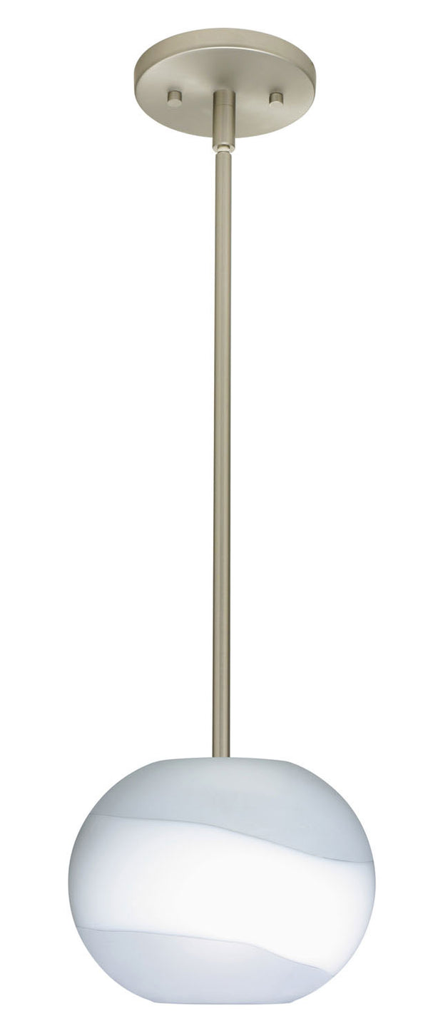 The Luna pendant features a flattened globe-shaped glass, creating a refined contemporary look. Our Opal Frost glass is a soft white cased glass that can suit any classic or modern decor. Opal has a very tranquil glow that is pleasing in appearance, while the frosted accent is stylish and sets this dcor apart. The smooth satin finishes on the clear outer layer is a result of an extensive etching process. This blown glass is handcrafted by a skilled artisan, utilizing century-old techniques passed down from generation to generation. The stem pendant fixture is equipped with an adjustable telescoping section, 4 connectable stem sections (3``, 6``, 12``, and 18``) and low Profile flat monopoint canopy. These stylish and functional luminaries are offered in a beautiful Satin Nickel finish.
