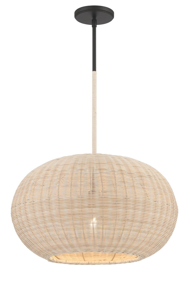 1 Light Pendant in Coal Finish with Natural Rattan Shade