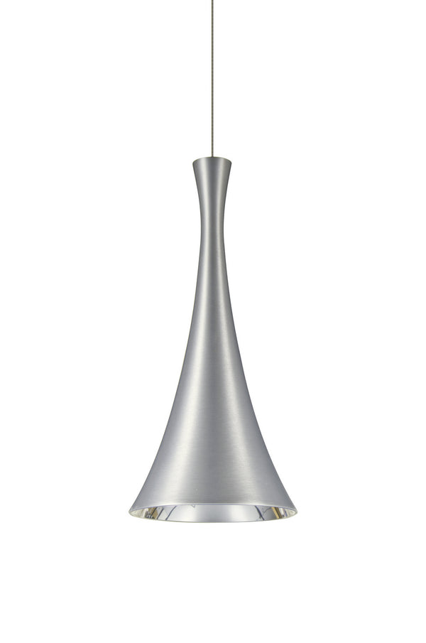 Our Rondo metal shade LED Pendant is a contemporary aluminum design, with semi-specular Alzak reflector for shielding the light source. The sleek trumpet-shaped design, along with the strong burst of focused downlight, makes this pendant ideal for task oriented applications in modern environments. The 12V cord pendant fixture is equipped with a 10` braided coaxial cord with Teflon jacket and a low profile flat monopoint canopy. These stylish and functional luminaries are offered in a beautiful brushed Bronze finish.