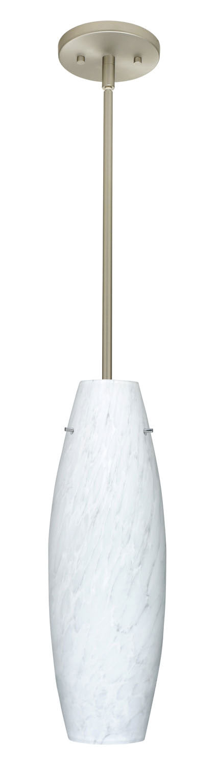 The Tara is a slender yet shapely handcrafted glass with a open top and bottom. Our Carrera glass is a classic yet modern dcor that gives off a soft white light. Clear molten glass is rolled in alabaster powder like frit, and then blown into shape with a semi-clear frosted white inner finish. This dcor is created by rolling molten glass in small bits of white called frit. The smooth satin finish on the clear outer layer is a result of an extensive etching process. This blown glass is handcrafted by a skilled artisan, utilizing century-old techniques passed down from generation to generation. Each piece of this dcor has its own artistic nature that can be individually appreciated. The stem pendant fixture is equipped with an adjustable telescoping section, 4 connectable stem sections (3``, 6``, 12``, and 18``) and low Profile flat monopoint canopy. These stylish and functional luminaries are offered in a beautiful Satin Nickel finish.
