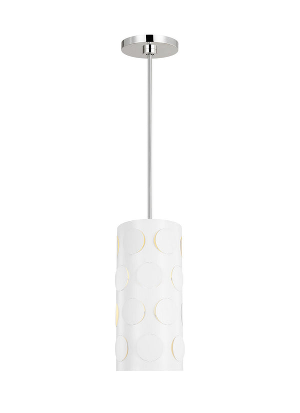 Dots are iconic to the kate spade brand—a simple and playful graphic motif. Dottie takes an iconic kate spade dot motif and cuts it into metal—creating a playful ambient light effect. A classic metal drum shade with an extra twist of perforated pattern. Use this fixture in place of any classic drum shade application, above a dining table, in a nook, or above an island.