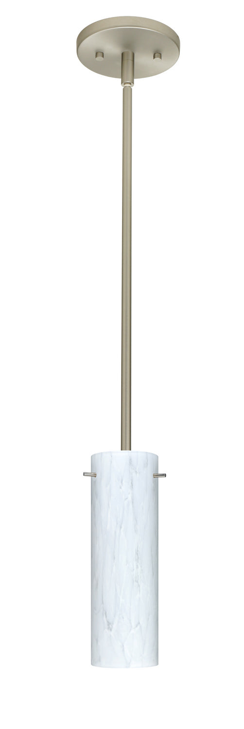 Satin Nickel with Carrera 9.875``x 3.125``x 3.125`` Glass and White Shade
