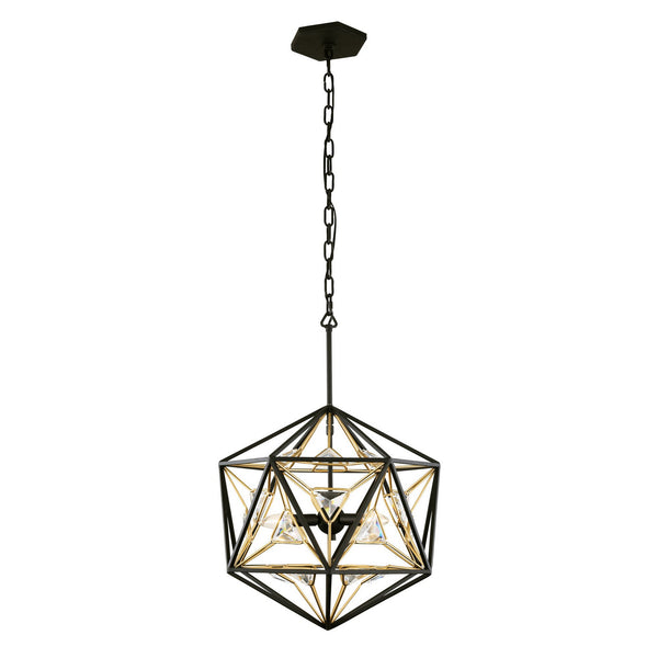 Matte Black/French Gold with Triangular Optic Crystal Glass and Clear Shade