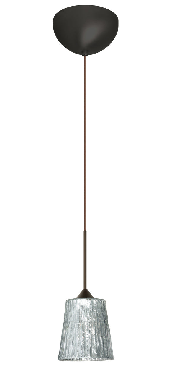 Nico 4 features a tapered drum shape that fits beautifully in transitional spaces. Our Clear Stone glass is a clear blown glass with an outer texture of coarse sandstone. Inspired by the elements of nature, the appearance of the surface resembles the beautiful cut patterning melting ice over a rock formation. This blown glass is handcrafted by a skilled artisan, utilizing century old techniques that have been passed down from generation to generation. Each piece of this dcor has its own artistic nature that can be individually appreciated. The 12V cord pendant fixture is equipped with a 10` coaxial cord with Teflon jacket and an ``Easy Install`` Dome monopoint canopy. These stylish and functional luminaries are offered in a beautiful brushed Bronze finish.