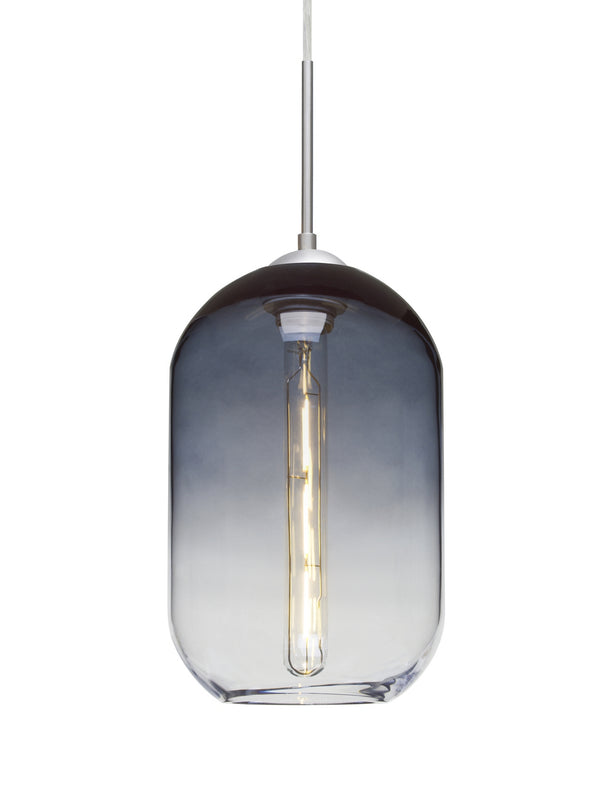 The Omega 12 Pendant is a transitional design composed of a corded transparent amber glass cylinder pendant, with an transitional gradient pattern from top to bottom of the glass. The dramatic play of light through the gradient color is a sophisicated affect, along with the modest display of the lamp filament behind the glass. The cord pendant fixture is equipped with a 10` SVT cordset and an ``Easy Install`` dome monopoint canopy. These stylish and functional luminaries are offered in a beautiful brushed Bronze finish.