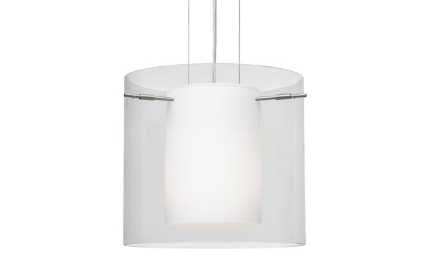 The Pahu is a distinctive double-glass pendant, with an inner opal cylinder centered within a transparent outer glass Our Trans-Amethyst colored blown glass complements the soft white Opal cased glass, which can suit any classic or modern decor. Opal has a very tranquil glow that is pleasing in appearance, as the Trans-Amethyst glass sparkles with the accents from that glow. The smooth satin finish on the opal’s outer layer is a result of an extensive etching process. This blown glass combination is handcrafted by a skilled artisan, utilizing century-old techniques passed down from generation to generation. The cable pendant fixture is equipped with three (3) 10` silver aircraft cables and 10` AWM cord set, and a low profile flat monopoint canopy. These stylish and functional luminaries are offered in a beautiful brushed Bronze finish.