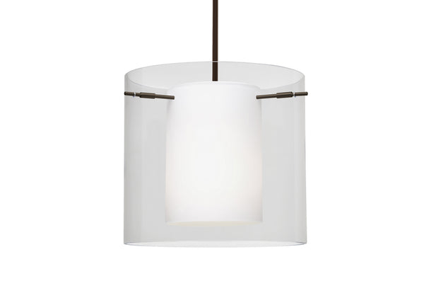 The Pahu is a distinctive double-glass pendant, with an inner opal cylinder centered within a transparent outer glass Our Trans-Amethyst colored blown glass complements the soft white Opal cased glass, which can suit any classic or modern decor. Opal has a very tranquil glow that is pleasing in appearance, as the Trans-Amethyst glass sparkles with the accents from that glow. The smooth satin finish on the opal’s outer layer is a result of an extensive etching process. This blown glass combination is handcrafted by a skilled artisan, utilizing century-old techniques passed down from generation to generation. The cable pendant fixture is equipped with three (3) 10` silver aircraft cables and 10` AWM cord set, and a low profile flat monopoint canopy. These stylish and functional luminaries are offered in a beautiful brushed Bronze finish.