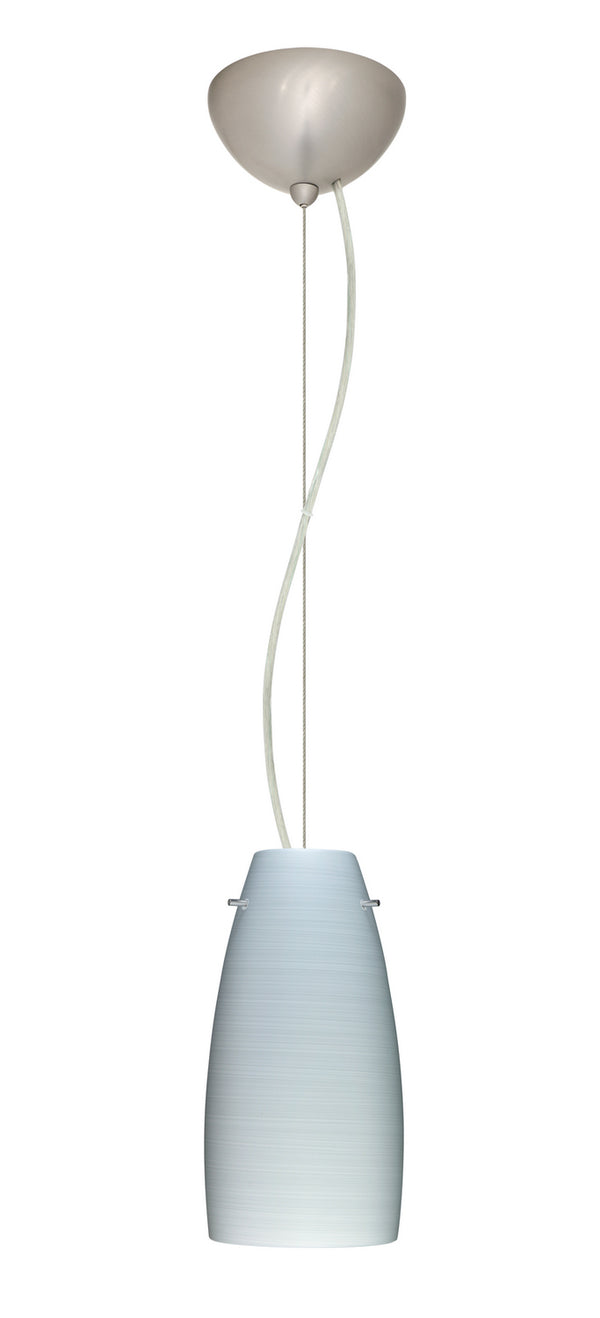 The Tao 10 pendant features a softly radiused glass, that will gracefully blend into almost any decorating theme. Our Titan glass is a soft off-white cased glass that is handcrafted with spiraling strokes of silver, emphasizing the subtle brush pattern. The silvery rippled design is subdued and harmonious. Unlit, it appears as simply a textured surface like spun silk, but when lit the texture comes alive. The smooth satin finish on the clear outer layer is a result of an extensive etching process, with the texture of the subtle brushing. This blown glass is handcrafted by a skilled artisan, utilizing century-old techniques passed down from generation to generation. The stem pendant fixture is equipped with an adjustable telescoping section, 4 connectable stem sections (3``, 6``, 12``, and 18``) and low Profile flat monopoint canopy. These stylish and functional luminaries are offered in a beautiful Satin Nickel finish.