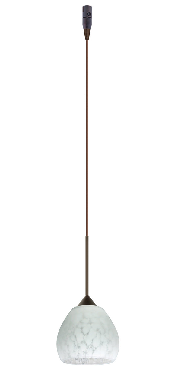 The Tay Tay is a compact handcrafted glass, softly radiused to fit gracefully into contemporary spaces. Our Opal glass is a soft white cased glass that can suit any classic or modern decor. Opal has a very tranquil glow that is pleasing in appearance. The smooth satin finish on the clear outer layer is a result of an extensive etching process. This blown glass is handcrafted by a skilled artisan, utilizing century-old techniques passed down from generation to generation. The 12V cord pendant fixture is equipped with a 10` coaxial cord with Teflon jacket and an ``Easy Install`` Dome monopoint canopy. These stylish and functional luminaries are offered in a beautiful brushed Bronze finish.