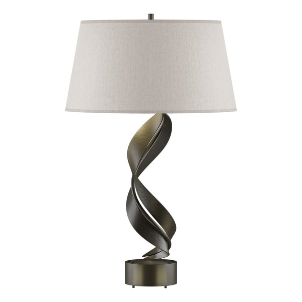 Ribbons of hand-forged steel dance around each other and the pipe and rise up from the base of this table lamp on their journey to the stylish shade. Handcrafted by artisans here at our forge in Vermont, each piece is unique.