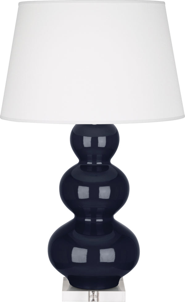 Midnight Blue Glazed Ceramic w/Lucite with Pearl Dupioni Fabric Shade Glass