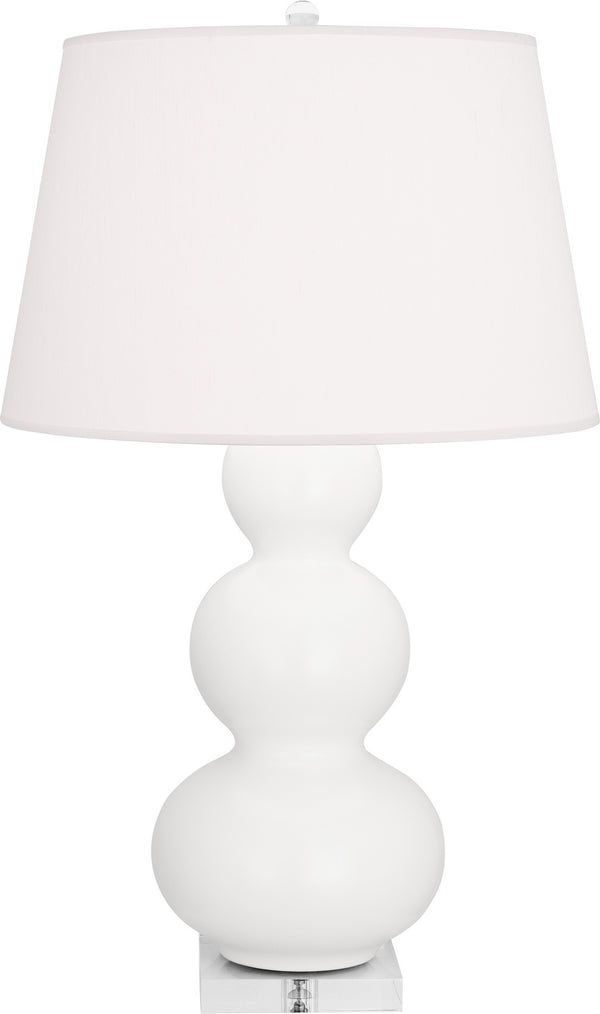 Matte Lily Glazed Ceramic w/Lucite with Pearl Dupioni Fabric Shade Glass and White Shade