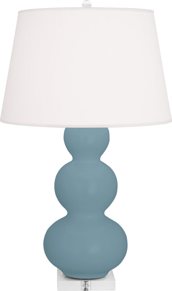 Steel Blue Glazed Ceramic w/Lucite with Pearl Dupioni Fabric Shade Glass