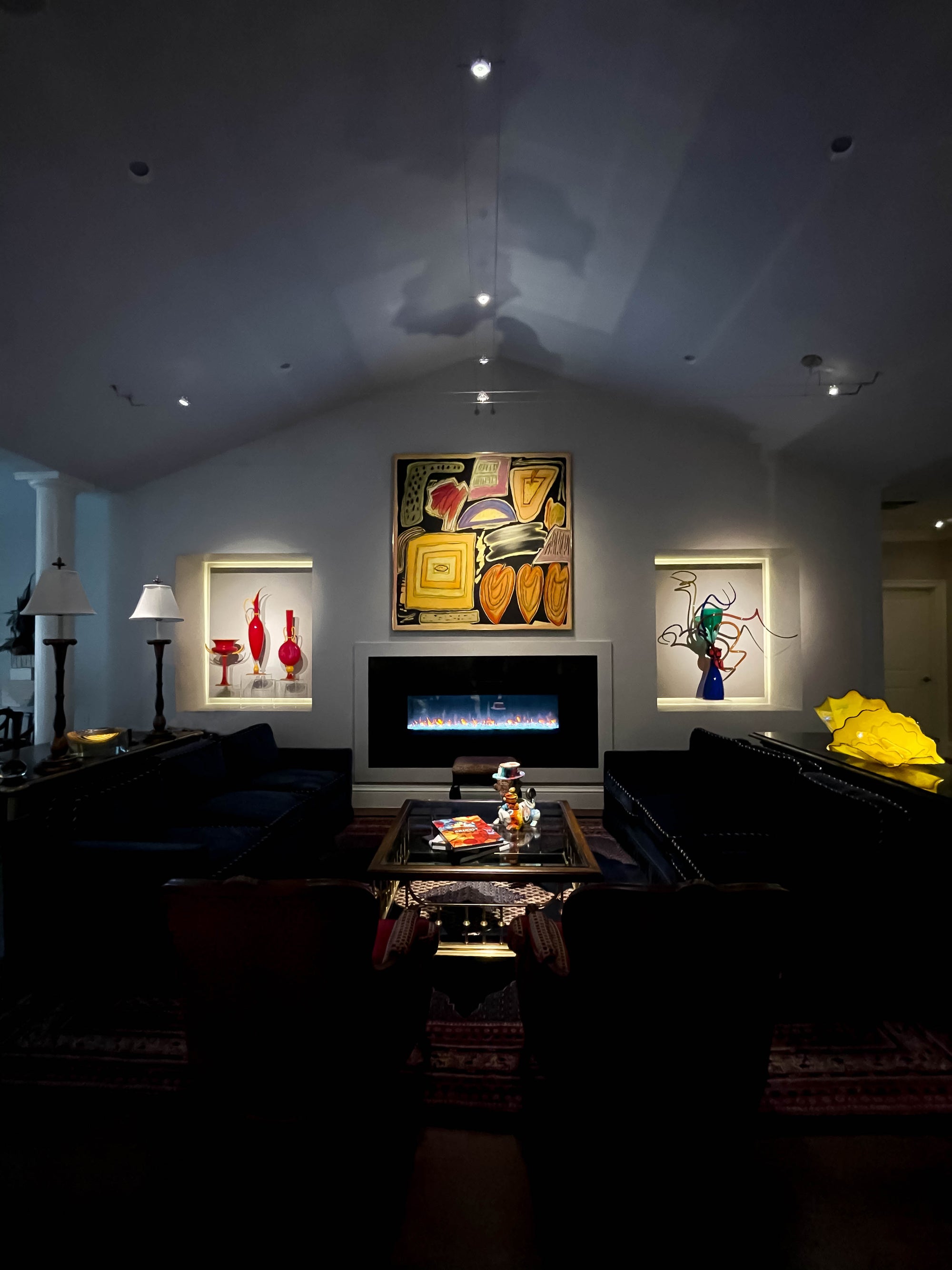 After each trip, a piece of art was brought back as the souvenir – their home became a museum of their memories; of their life. Our lighting design team expertly weaves ambient, task, and accent illumination to highlight architectural details. Their focus to enhance textures, and create warm, inviting spaces that feel both beautifully finished and intimately livable – all while enhancing the art souveniers.