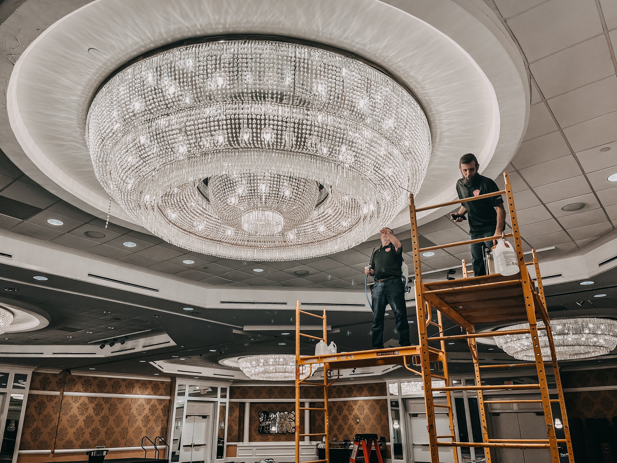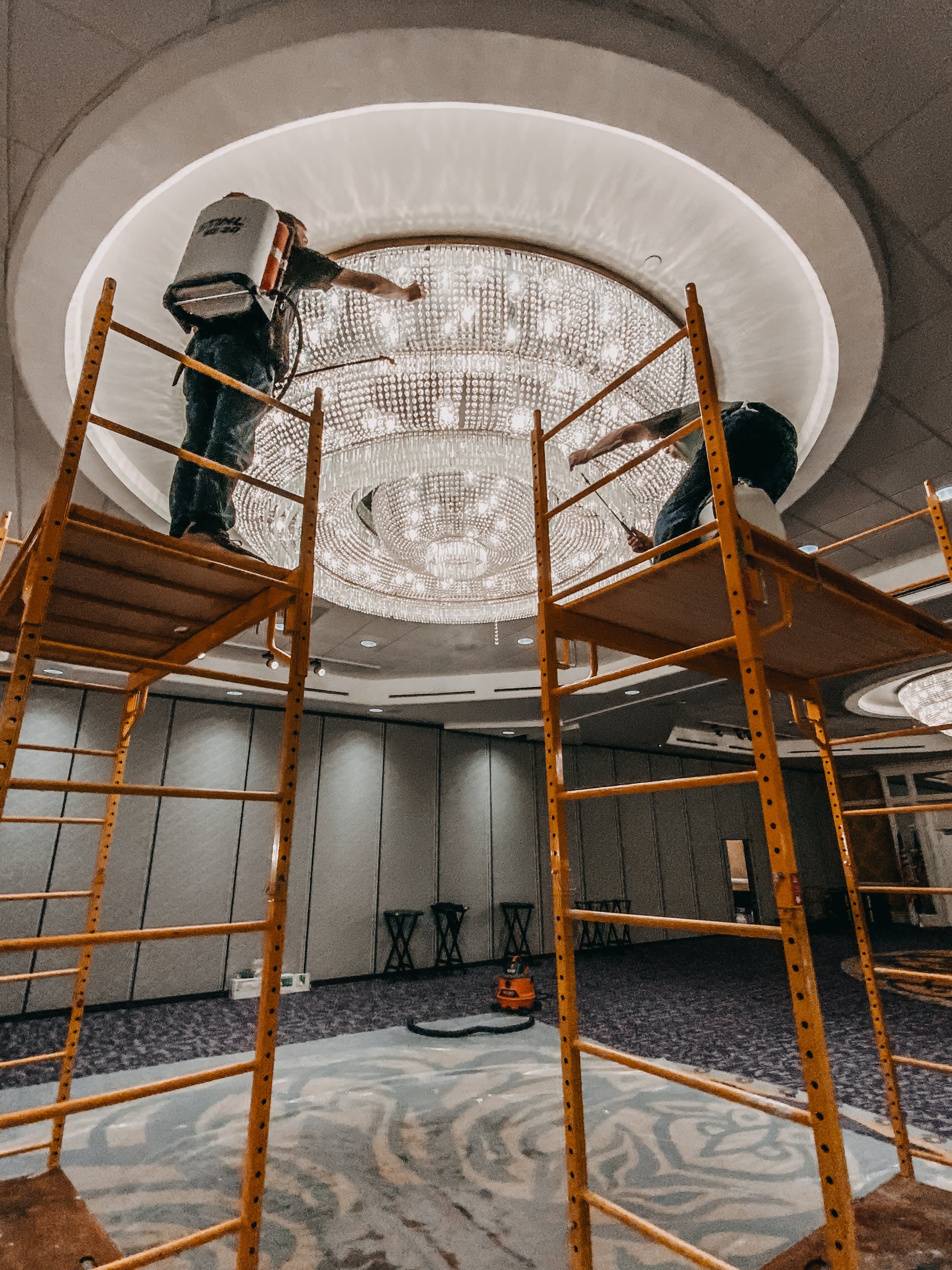 Our team handles the detailed cleaning of crystal or glass chandeliers of all sizes.