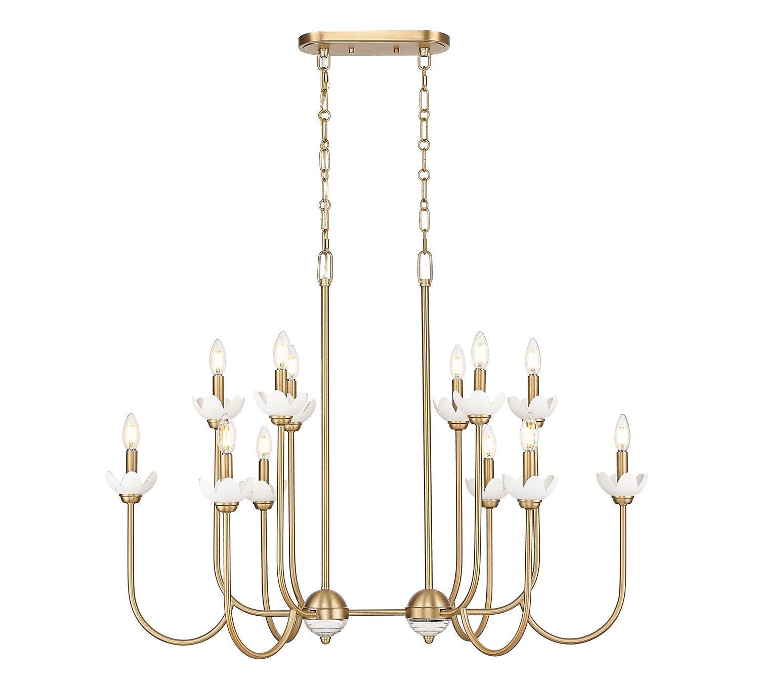 Dive into vintage charm with the floral details and inviting modern gold finish featured on this transitional eight-light chandelier. A dazzling choice over a dining table or foyer, it features delicately curves arms and interchangeable bobeches that resemble flower petals, adding unmistakable feminine charm.