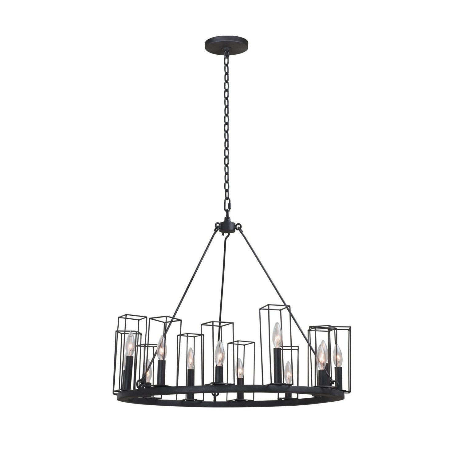 Clean geometric forms frame warm candlelight creating a landscape fit for any living space. Featuring a Black Iron finish and simple steel construction.