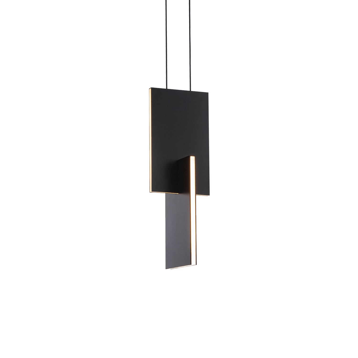Cool, connective, sculptural. Two interlocking panels render a thought provoking aesthetic. Subtle ambient illumination commands attention of this floating work of art.