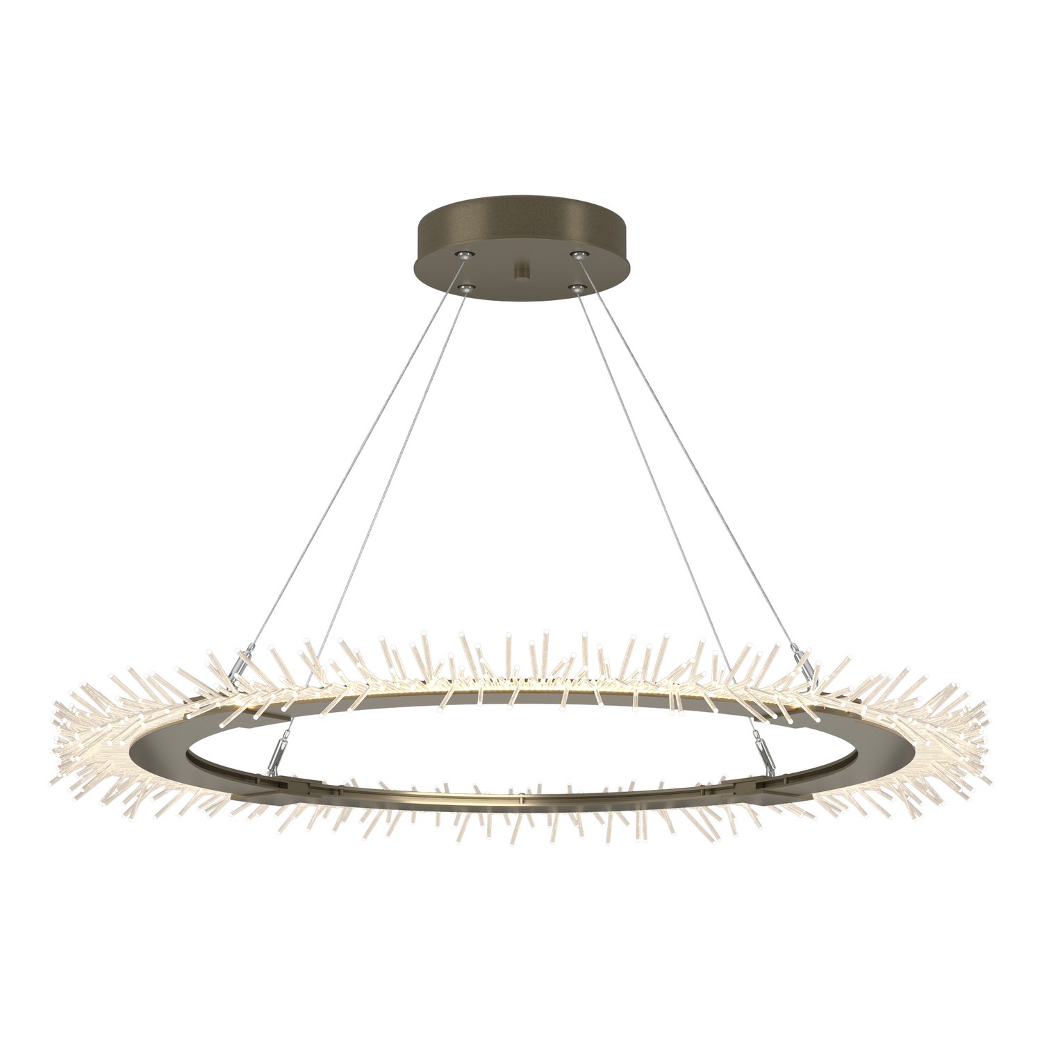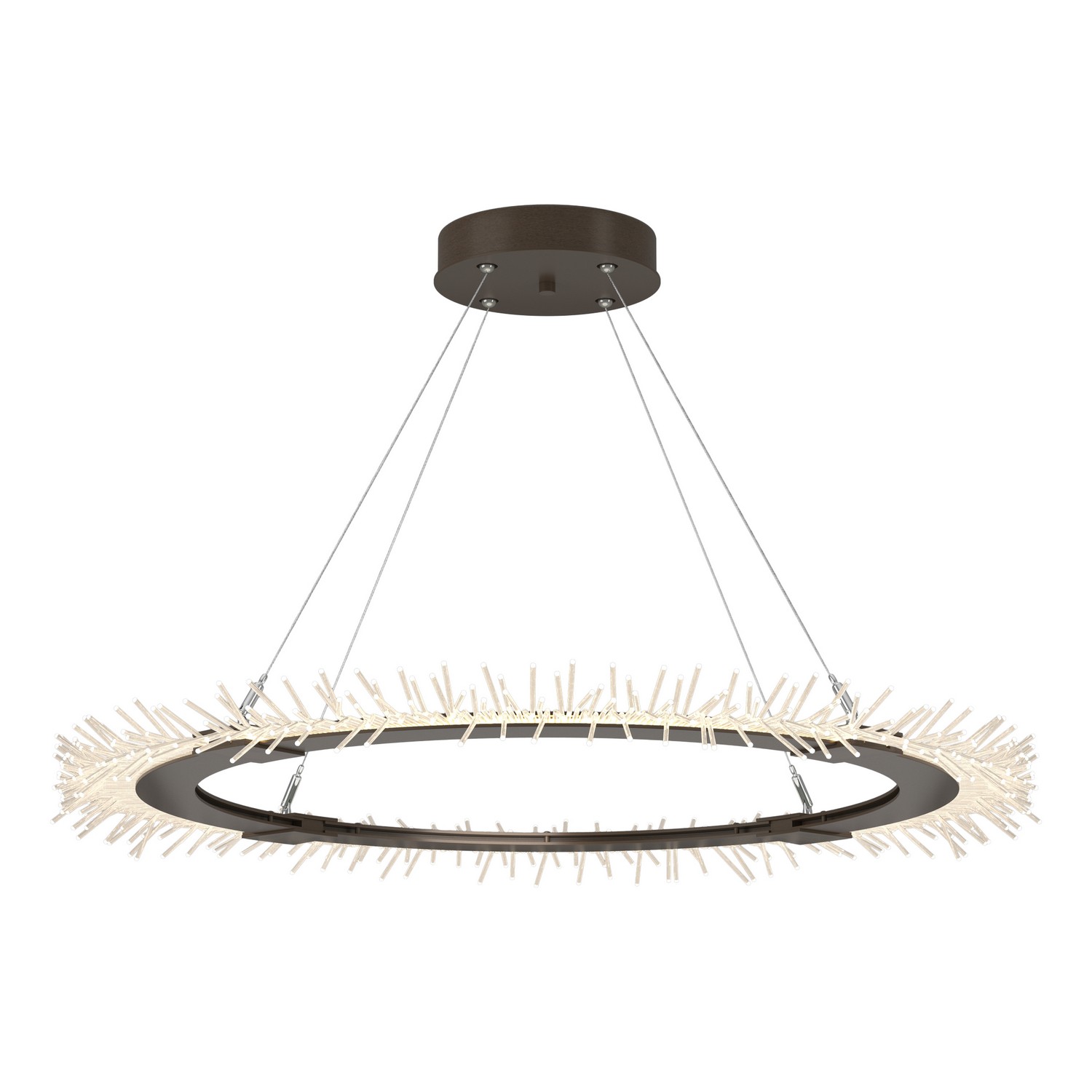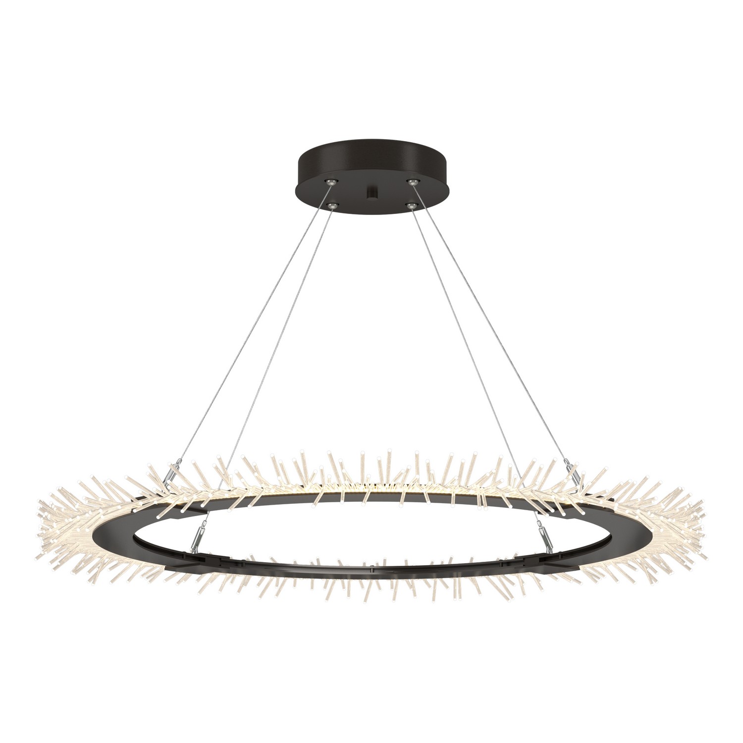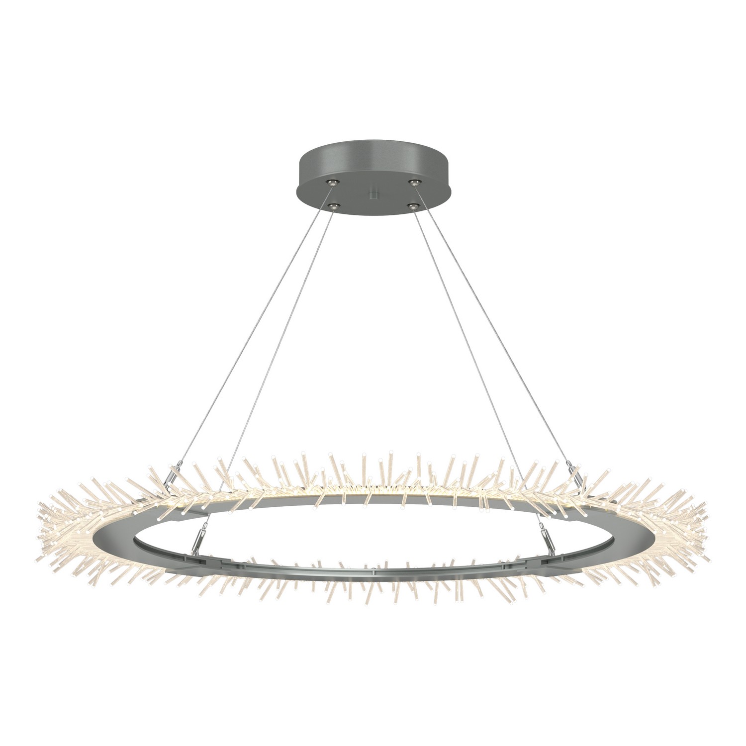 A circular LED light guide is suspended from four cables and feeds light to the Anemone's bristles. The bristles spread light to your room as dim or bright as you'd like.