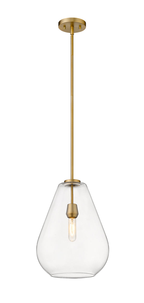 An eye-catching one-light pendant perfectly encapsulates the modern aesthetic. The tapered bell-shaped shade is made from clear glass, suspended from a steel frame with a sleek brushed nickel finish. The fixture brings a chic cutting edge to a contemporary kitchen or dining room.