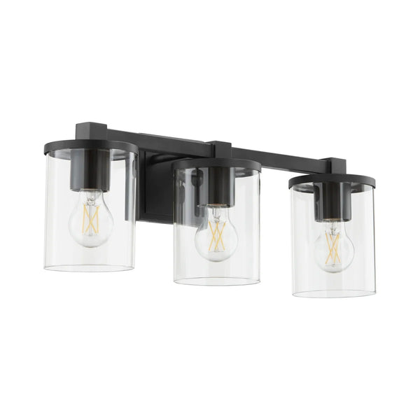The Bolton series of wall mounts and vanities offers crisp angles and clean details that ground the collection in a contemporary aesthetic. Clear glass cylindrical shades and options of aged brass or matte black support the overall modernity of the series. Combine options of 2, 3 or 4 light vanities with the 1 light wall mount for a cohesive look throughout your home.