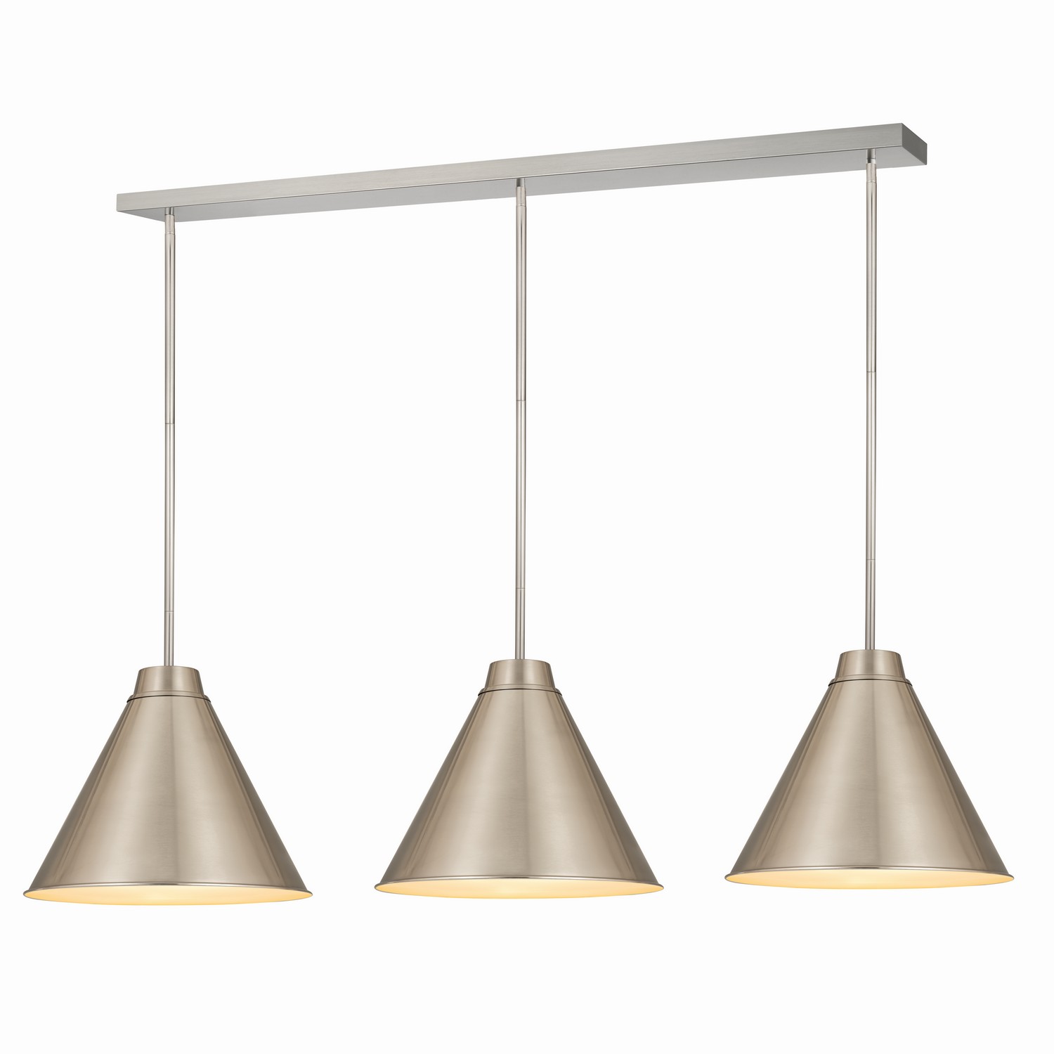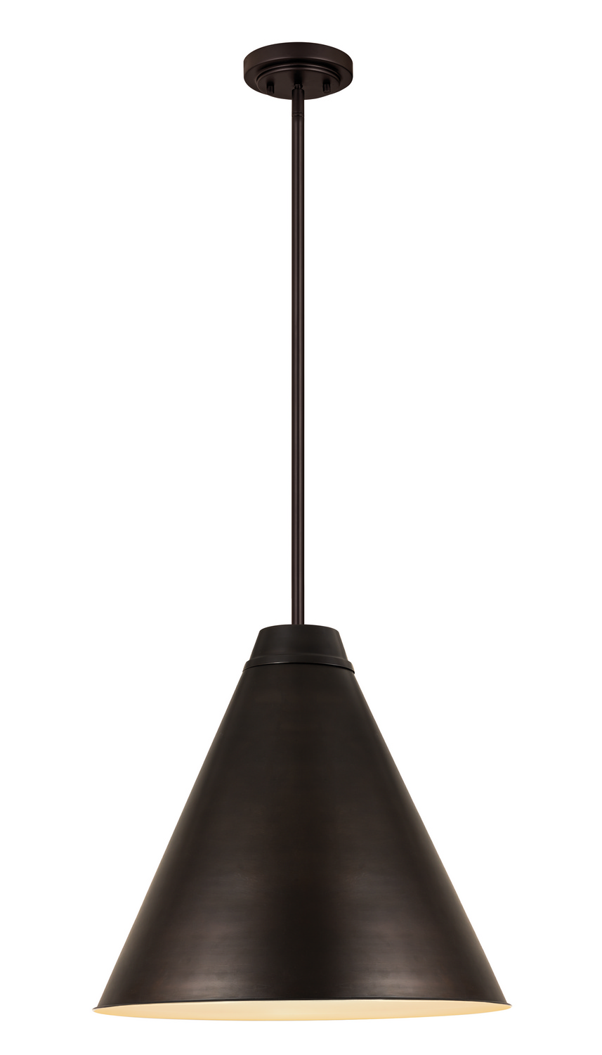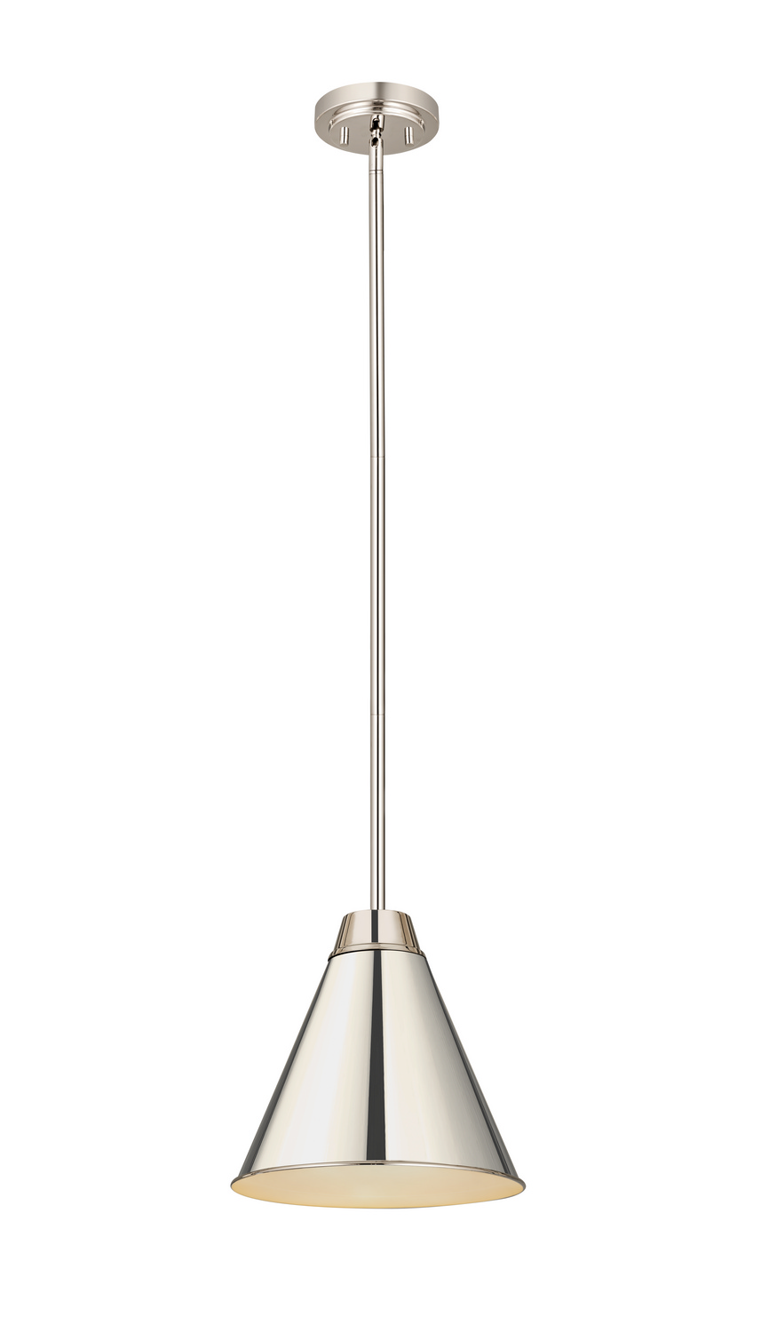 A customized kitchen or living space deserves fashionable lighting fixtures, and this one-light pendant from the Eaton collection delivers. This sleek, simple light offers a minimalist design with a cone-shaped shade, down rod, and canopy mount crafted of iron with a lovely brushed nickel finish. Mount this light straight-up or on a sloped ceiling.