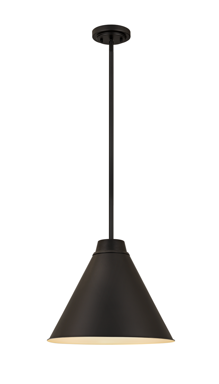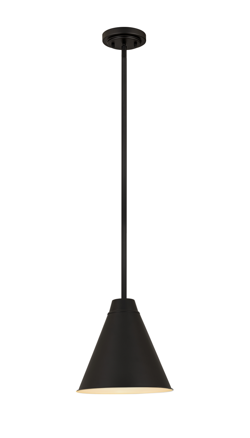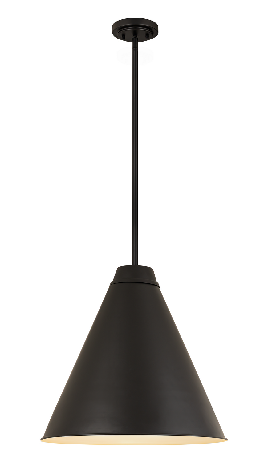 A customized kitchen or living space deserves fashionable lighting fixtures, and this one-light pendant from the Eaton collection delivers. This sleek, simple light offers a minimalist design with a cone-shaped shade, down rod, and canopy mount crafted of iron with a lovely brushed nickel finish. Mount this light straight-up or on a sloped ceiling.