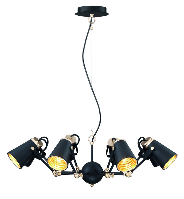 The 8-light Collection pendant adds beauty and function to any room. Each light is adjustable to highlight an individual part of any room, or just create a general ambience. Black with Brass accents, this light makes a statement in any room of the house. Manufacturer offers meticulous German engineering to beautify your home.