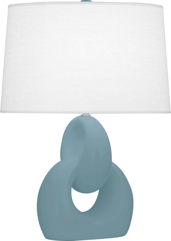 Baby Blue Glazed Ceramic With Polished Nickel Accents Fusion Table Lamp With Oval Oyster Linen Shade - A contemporary collection, Fusion draws the eye with elegant curves, flowing movement and a design comprised of joined rings.